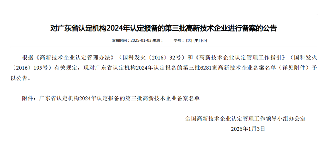 附件:广东省认定机构2024年认定报备的第三批高新技术企业进行备案的公告
